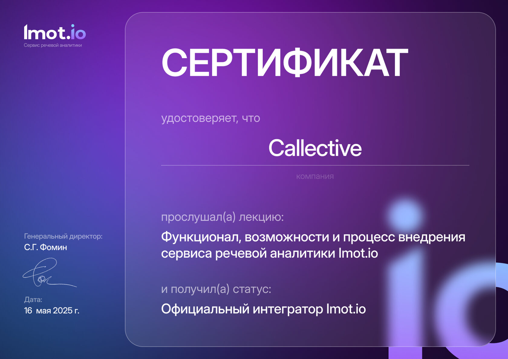 Компания Callective является официальным интегратором платформы с правом на продажу, внедрение и интеграцию продуктов imotio.